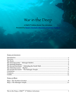 War in the Deep is a 4-encounter D&D 4th edition heroic tier adventure that's been designed so it can be scaled for 1th through 9th level adventurers. The climax can fit into part of a larger quest or campaign, or the story can be left as a one-shot adventure. It's designed to be highly flexible, easy to run, and exciting for players.